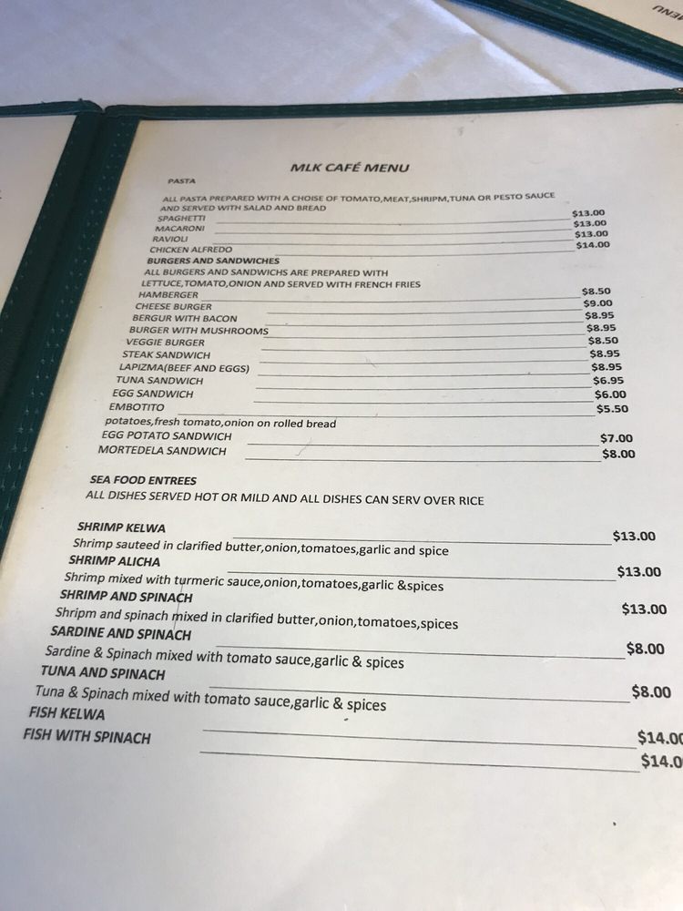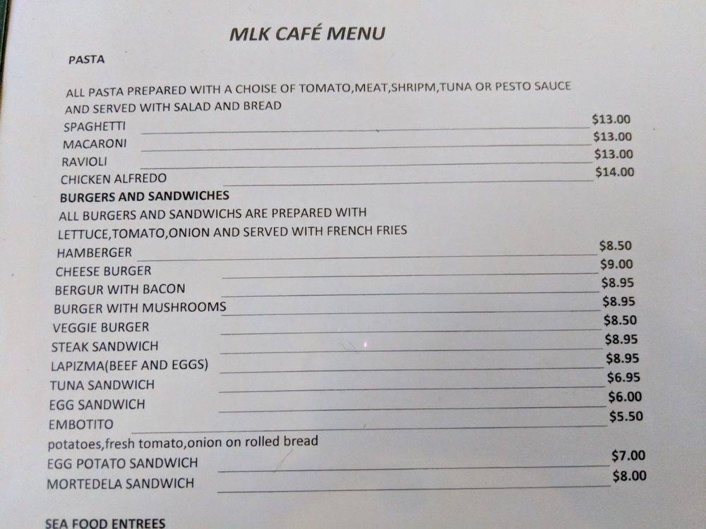 MLK Café Menu