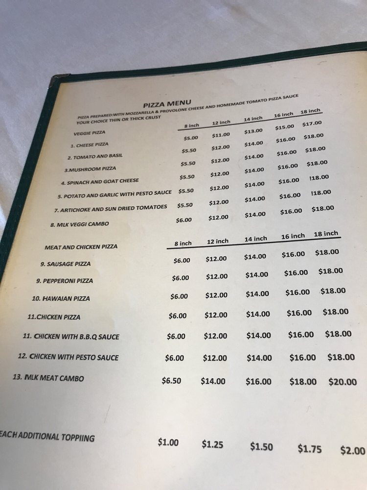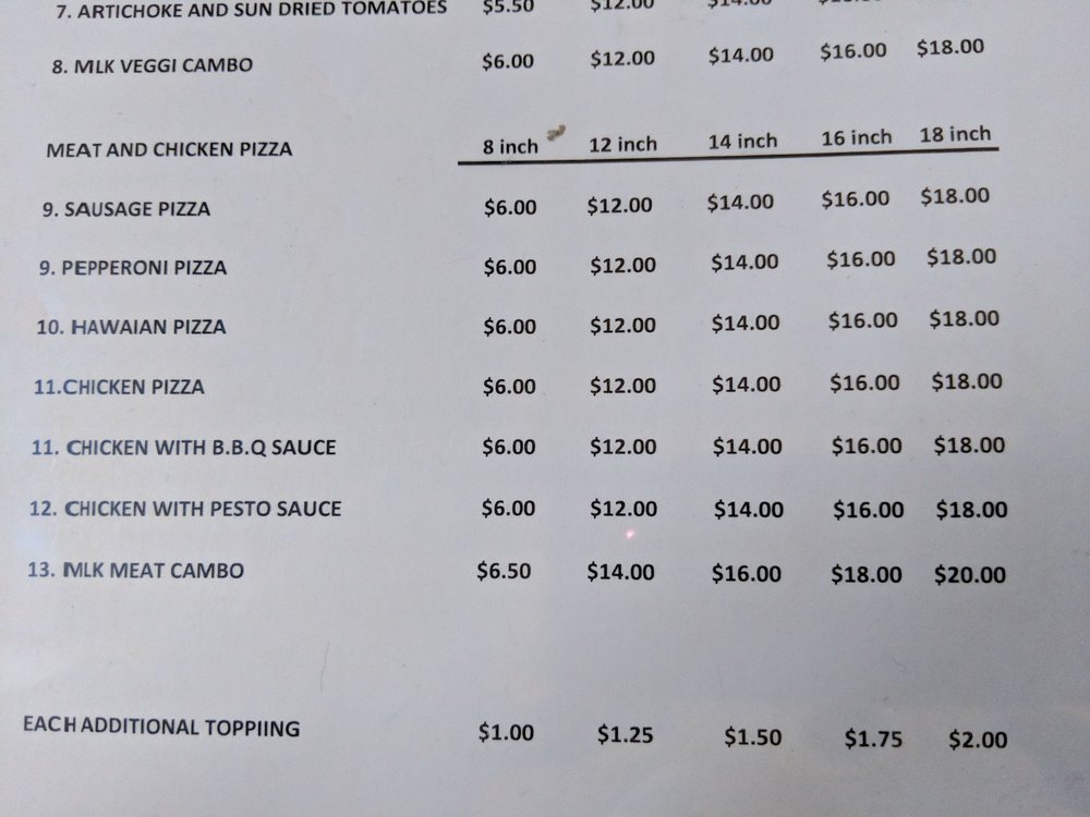 Introducing MLK Café, located at 3860 Martin Luther King Junior Way in Oakland, CA, this unique spot offers a blend of pizza, coffee, and tea in a classy yet casual setting. The menu features a variety of appetizers like Buffalo Wings and Fish & Fries, delicious salads including the Mlk House Salad and Chicken Salad, and refreshing fresh juices such as Orange and Pineapple Juice.